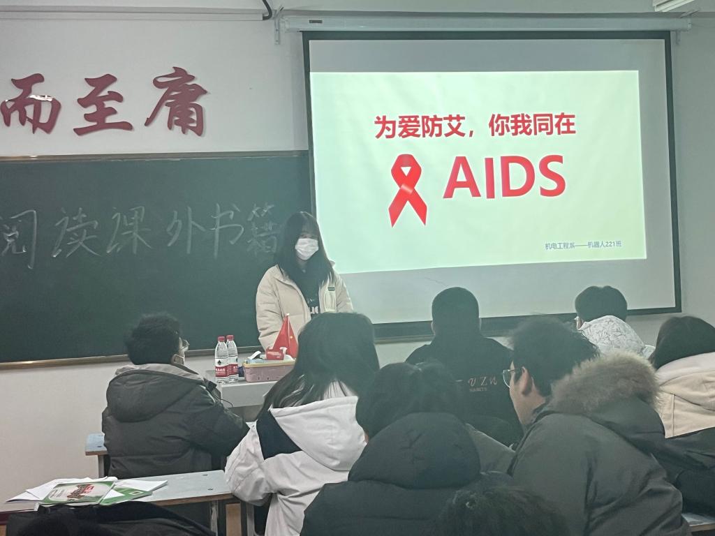 为预防艾滋传播,建立大学生正确的恋爱观。在学校的领导下,以及团支书宁显鹏的带领下于图书馆408开展“为爱防艾,你我同在”主题会议。