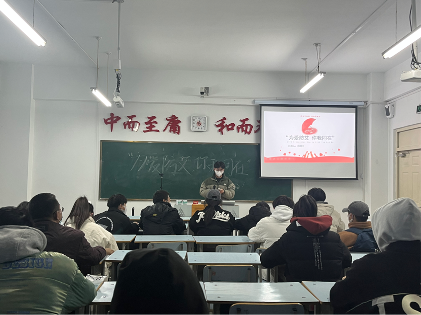 为了提高学生们对艾滋病的防范意识,以及普及学生们对如何防控艾滋病方面的知识。2022年12月1日,在图书馆115团支书邱博文带领机器人222全体学生展开“为爱防爱,你我同在”主题团课。
