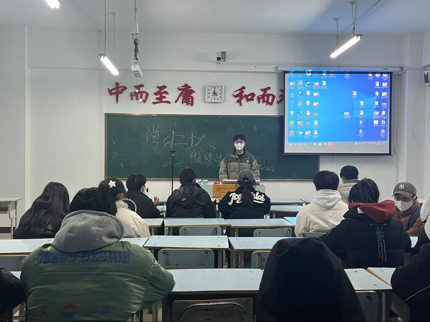 为了激发学生们的爱国热情,充实学生们的党史知识面。2022年12月1日团支书邱博文带领机器人222全体学生在图书馆115展开“学习二十大,奋进新征”主题团课。