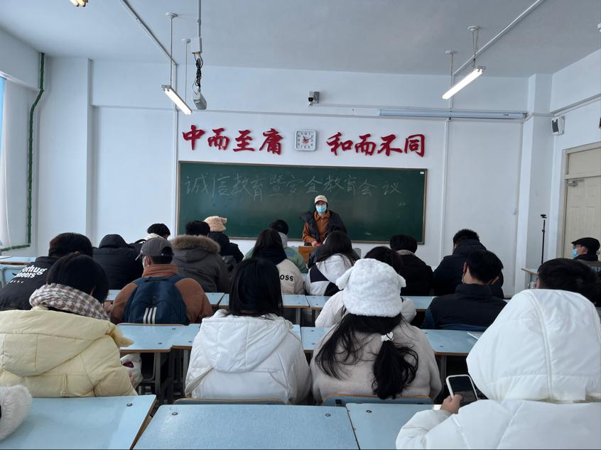 临近期末,为了加强学生们在老师中的诚信意识,以及学生们在回家途中的安全问题,2022年12月1日辅导员老师王虹在图书馆115对机器人222全体同学展开机器人222开展诚信考试教育暨安全教育会议。