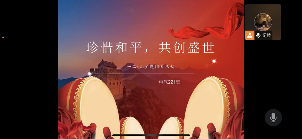 12月9日电气221班开展纪念“一二·九”爱国主题团课活动。活动由团支书纪帅琪主持,全体学生参加本次主题团课活动。