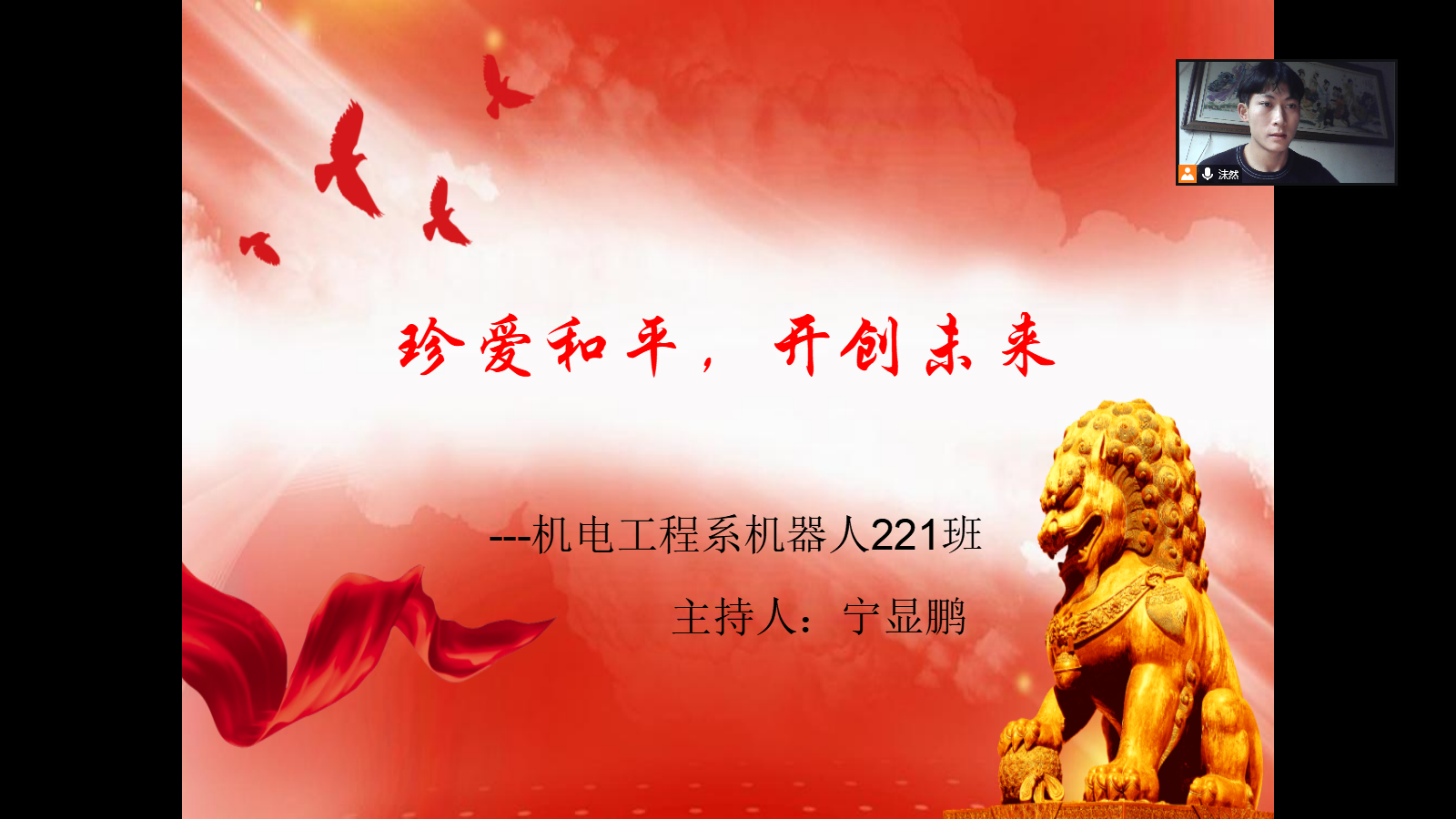 为了全面贯彻和平发展的发展主旨。在学校的领导下,在团支书宁显鹏的组织和带领下于2022年12月13日,于腾讯会议上开展主题为“珍惜和平开创未来”的主题团活。