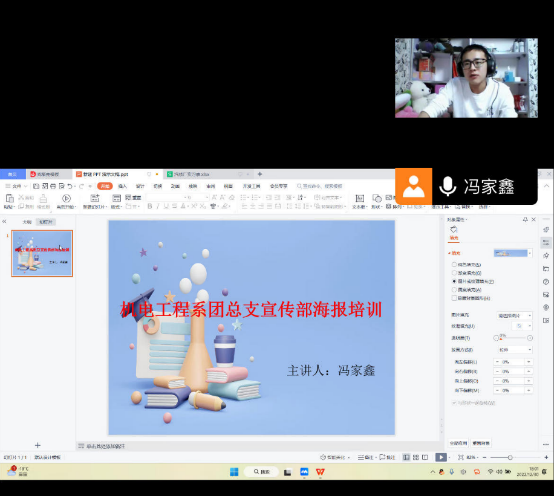 为了部员更好的完成海报的制作工作,机电工程系团总支宣传部在线上召开“海报培训”会议,由宣传部部长冯家鑫主持。