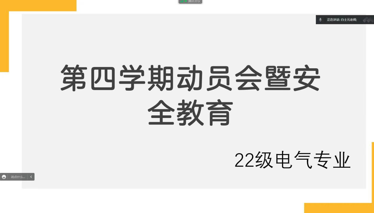 期末考试的结束,代表着第四学期的开始。因疫情原因,本次第四学期动员会采取线上方式。在短暂的寒暄过后,辅导员老师白士元对本次第四学期的安排进行总结。
