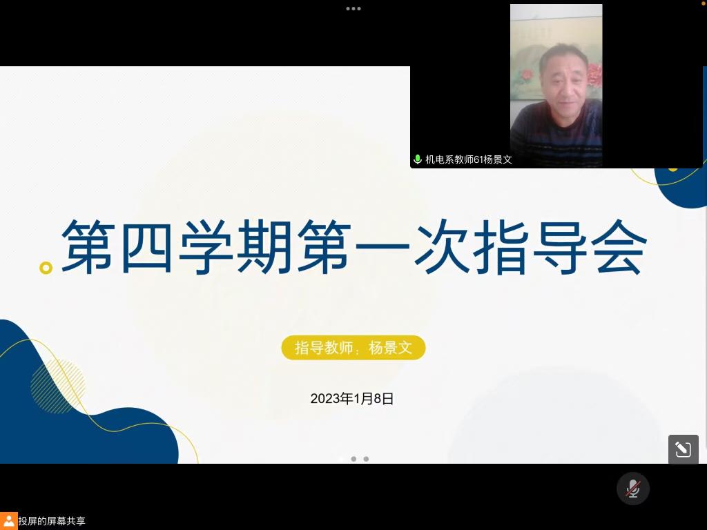 2023年1月8日,为响应学院号召,提高第四学期实践质量,帮助学生充分了解第四学期的内容,第四学期指导教师杨景文在线上召开了第四学期第一次会议。