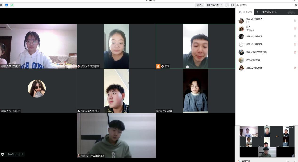 为贯彻落实学校寒假实践教学的任务。1月9日20时,教师杨茂楠利用线上腾讯会议对学生组长进行实践活动工作定安排。参会人员主要是机器人工程专业各班班长和学委。