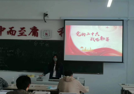 党的二十大是在我们党成功走过百年奋斗历程、又踏上新的赶考之路的关键时刻召开的一次重要会议;从国际形式上看,党的二十大不仅关系中国未来一个时期的改革发展,也将对世界与发展产生广泛反而深远的影响。车辆223班团支书杨晓颖通过播放党的二十大开会视频以及PPT给同学们讲述党的二十大精神使得此次团课顺利开展。