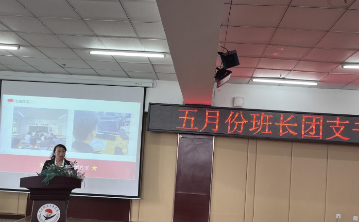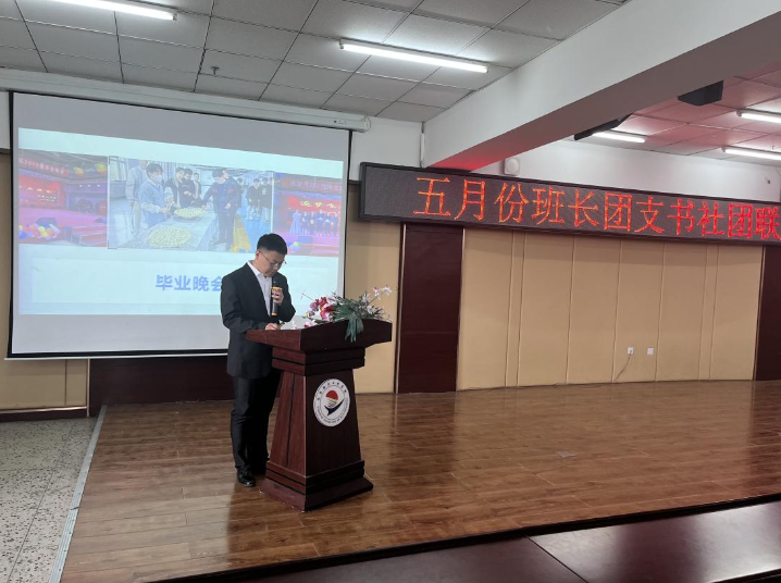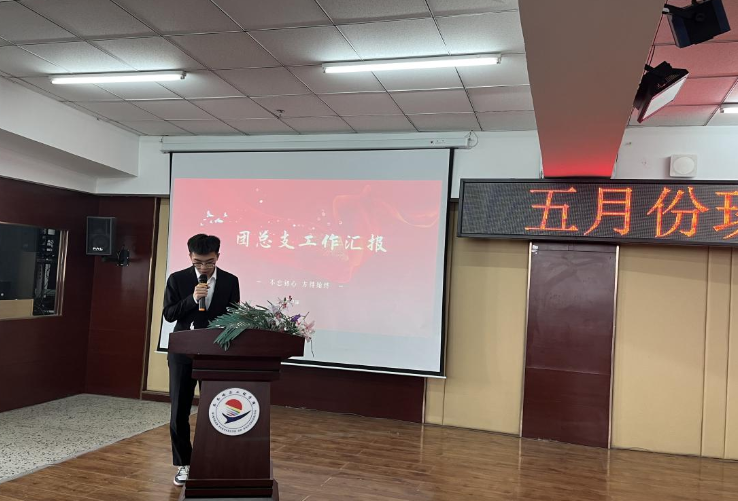 会议第二项,由团总支组织部部长刘润澎进行团总支五月份工作阐述,首先表示在过去一个月里,团总支进行的工作。第二对过去一个月内团活组织活动进行了简要总结,第三介绍了青年志愿者的工作,简要概括了近期活动开展情况。最后对评奖评优代表以及青年大学习优秀班级进行颁奖与鼓励。