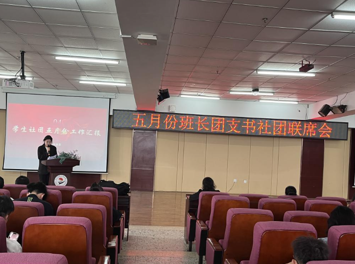 会议第四项,由团总支组织部部长刘润澎进行五月份社团工作汇报,刘润澎同学简要阐述了本月份社团开展活动情况并指出优点及不足,望各位同学积极参与社团活动,集思广益使社团活动的开展变得更好。