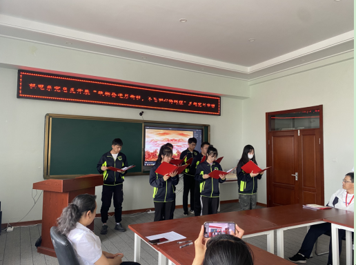 会议进行第四项,车辆支部学生带来节目:《没有共产党就没有新中国》,他们激情饱满,昂扬斗志,活力四射,展现出当代青年的精彩风貌。