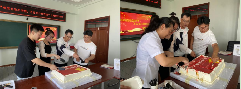 会议第六项,由过政治生日的老师代表和同学代表切政治生日蛋糕。