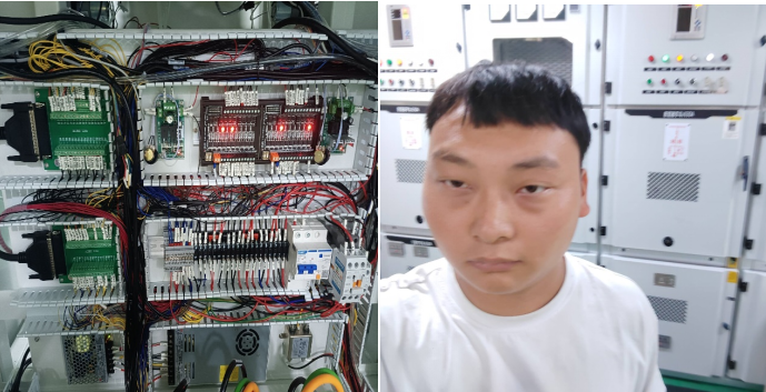 配电室内有两排配电柜,每排各分为9个相对应的配电柜,一排配电柜由一条十千伏的大变115线供电,称为工作配电柜,另一排由一条十千伏的大变112线,称为备用配用配电柜,配电柜的链接方式由各个母线相串联链接起来,再由相应的配电柜各分出一条线引进各个变电站,当工作时一条线使用,另一条作为备用线,之后有各个变电站将电压分为380V和220V,配电柜上有三只指示灯,红色表示工作,绿色表示不带电,当正在出现故障时,可及时启用备用线,以确保正常供电,此工作方式为双电源备用,平时两条母线之问是断开的,这被称为单母线分段运行。