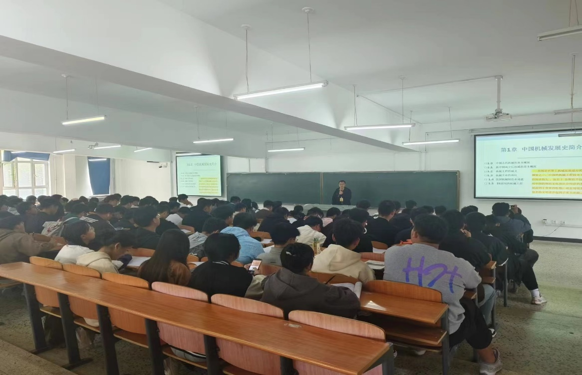 讲座伊始,谢老师为学生们介绍了中国古代机械的基本概况,介绍了从石器时代到清朝时代各个时期的机械阶段性发展,并展示了如两汉时期的木牛流马、记里鼓车,魏晋南北朝时期的水碾,宋元时期的活塞风箱等古代机械智慧结晶。其次介绍了新中国成立后机械的基本概况,展示了如第一台国产轿车、第一台数控机床等新中国机械的发展成果。随后又讲述了机械工程的涵义,内容深厚,具有极强的系统性与概括性。最后展示了机械工业在国民经济产业结构的地位,体现了其在我们中国发展中具有的不可撼动的地位。讲座过程中,谢老师旁征博引,介绍了从古至今机械发展的许多历史性成果,让学生们深刻感受到机械发展史的辉煌。