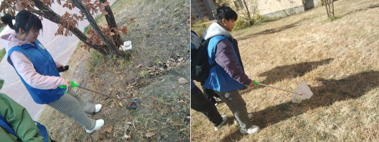 在社区管理人员引领下,志愿者们负责清理社区公园内的垃圾。而社区广场和社区商铺后面垃圾较多,包括纸屑、烟蒂、塑料袋等各种废弃物。志愿者们带着高度的责任感,仔细地清理每一个角落。志愿者们用抓斗工具将垃圾装进环保袋,同时还不忘进行分类,将可回收垃圾和其他垃圾分别放置。整个活动过程中,志愿者们表现出了极大的耐心和积极性。