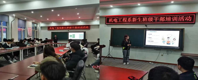 为了推动机电工程系23级班级干部的能力素质提高,了解校园文化,了解系里两大组织的职能和工作性质。机电工程系团学两大组织分别于于2023年10月9日-10月13日及10月19日在图608召开“机电工程系23级团学干部培训活动”。