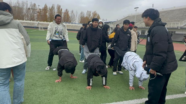 活动开始,在学长的指导下,学生们通过做游戏的方式进行分组,向大家简单介绍游戏规则后开始了第一个户外拓展活动——“前方打仗,后方支援”。这个活动主要想让学生们意识到,在班级建设中,需要的不是的人英雄主义,而是在班级需要建设和发展时,贡献出自所拥有的东西,增强自己的责任意识和团队意识。机会永远都是留给有准备的人,班干部首先具备这样的能力后,才能带领班级进步和发展。