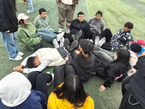 在学长进行短暂总结后,开始进行第二个活动——七手八脚。此活动主要考察学生们的思维能力和活跃度,班级干部在带领班级发展时,需要做到上传下达,树立起责任意识,将老师布置下去的任务带领学生积极完成,才能加强班级管理。