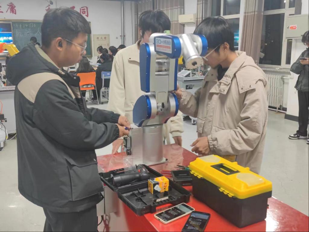 活动主要2分为两部分,通过社长进行讲解,结合视频播放,让同学们对机器人有一个大概的了解,然后通过同学们自己在纸上绘画画出自己认知的机器人,让同学们充分发挥想象力。然后通过对机械臂的拆解,加深对于机器的了解。
