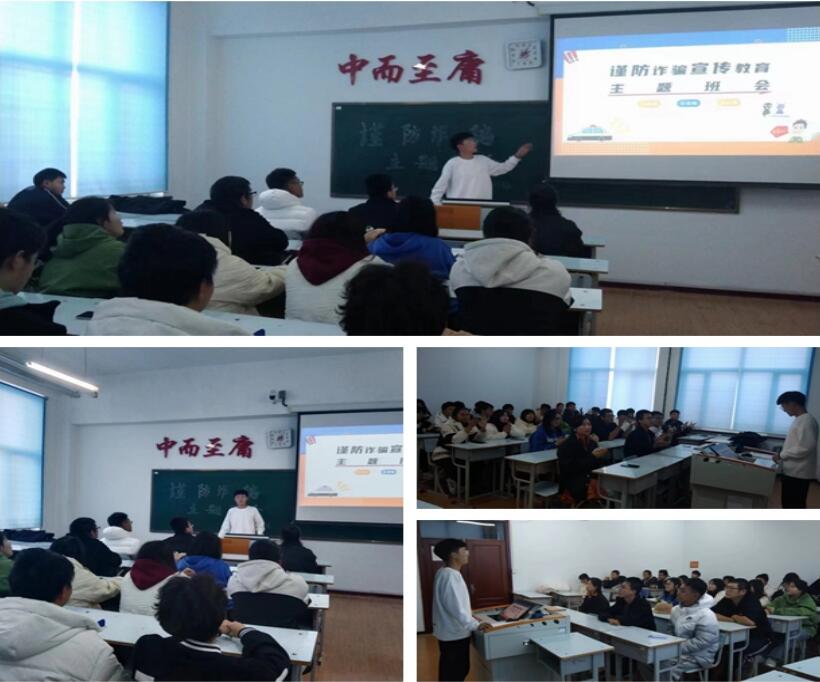最后辅导员老师王虹进行班会总结,随着互联网、电信业的不断发展,强调近年来,利用电话、短信、网络等方式实行诈骗的数不胜数,许多学生掉落了诈骗的陷阱,大家要提高警惕,不轻信来路不明的电话和短信,不因小利而受诱惑,不要轻易向对方透入自己及家人的信息。如果落入诈骗陷阱一定要第一时间报警、与老师联系,商量对策。