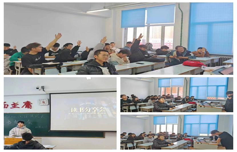 在读书分享会上,学习委员王春燕首先通过一则短视频,向同学们抛出了“读书的意义”的问题,引发学生深思,在短暂的思考后,学生们纷纷提出了自己的见解。学生们的踊跃发言,不仅活跃了现场气氛,更带动了其余学生的思考,让每位学生深刻理解读书的意义。