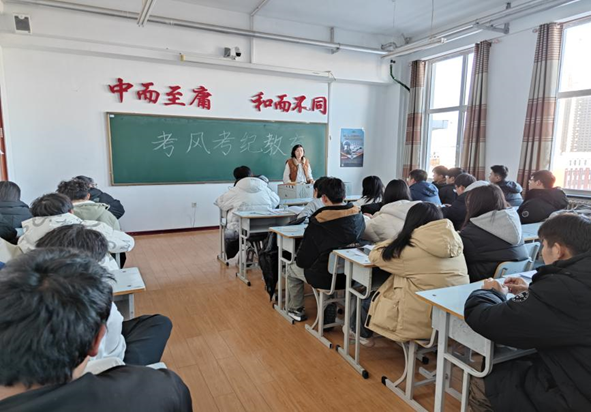 为了加强学生们对考试纪律和诚信考试的认识,营造一个公平、公正、诚信的考试环境。辅导员老师王虹于11月24日在图书馆614西开展考风考纪教育主题班会。