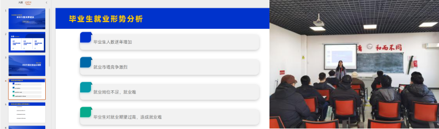 通过本次会议,让同学们深刻认识当前的就业形式,设置合理目标,积极主动择业,对同学们今后就业有很大帮助。