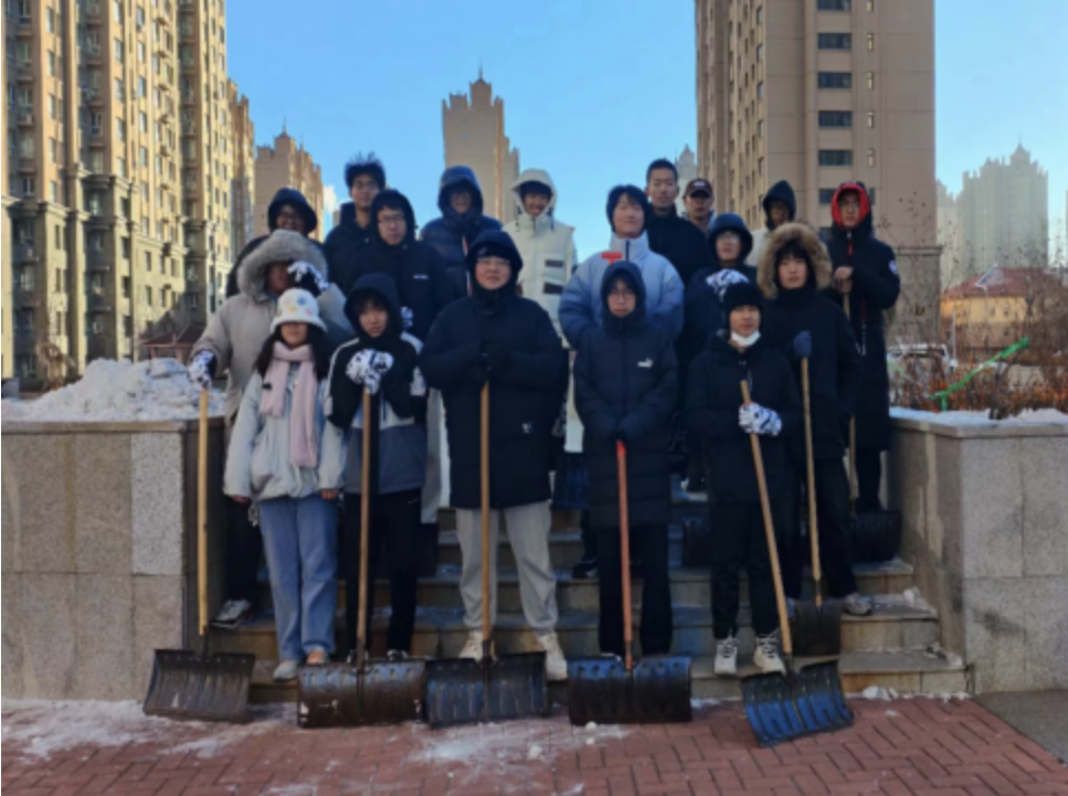为了增强学生们的社会责任感,新能源232班青工委员张华超于2023年11月30日上午八点三十分,带领新能源232二十余名学生前往金域名都进行社区街道积雪清理。