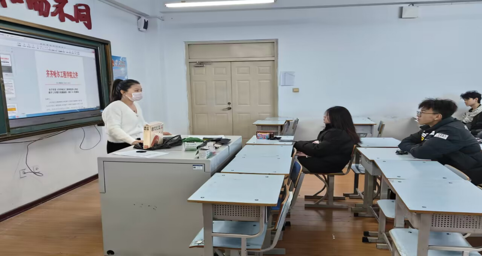 李玲老师强调了期末考试的纪律。宣读了《齐齐哈尔工程学院考试违规处理办法》,嘱咐学生严肃考风考纪,遵守考试规章制度,坚决抵制作弊行为。并且对学生的绩点情况进行了解,对学分绩点较低的同学进行了预警,告知其我校课程考核管理办法,并询问生活和学习上遇到的困难,关注学生的身体和心理状况,并指导学生制定合理的复习计划,调整心态积极面对期末考试。
