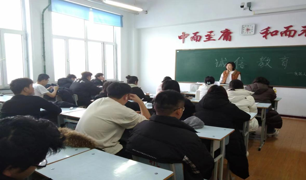 首先,辅导员老师王虹对于学生们近期考试暴露的一些问题,对学生们进行了告诫。提出学生在参加任何考试时都应该遵守诚信原则,不得作弊或违反考试规定。任何形式的作弊、抄袭、剽窃或伪造都是严重违反考试纪律的行为。