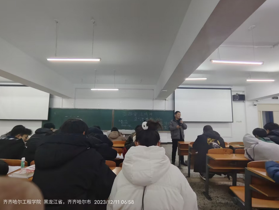 抵制邪教渗透,筑牢安全防线。为提高学生对邪教的防范意识,认清邪教本质与其危害。辅导员老师徐飞于2023年12月11日在图书馆101开展反对邪教“弘扬宪法精神,建设法治文化”主题会议。