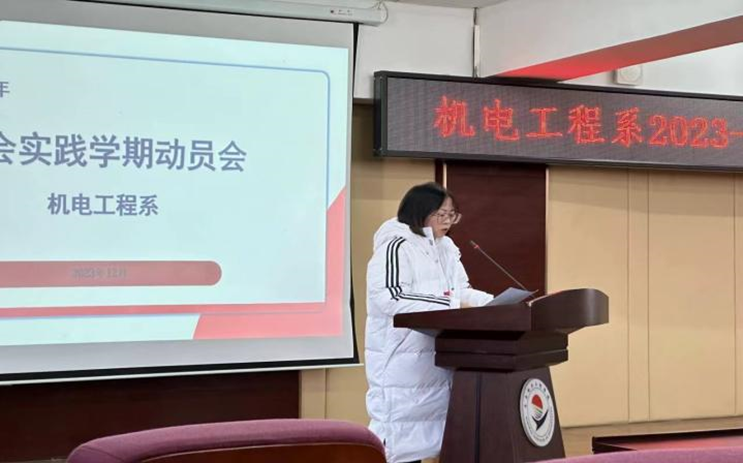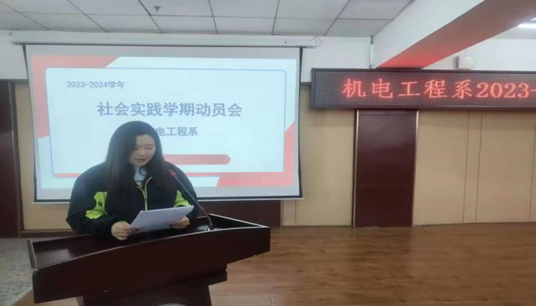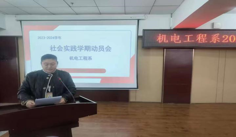 会议首先由机电工程系党总支副书记郭明敬宣读《机电工程系2023-2024学年度社会实践学期实施方案》,并对本次社会实践学期的各项任务和要求进行了详细的介绍和解读。