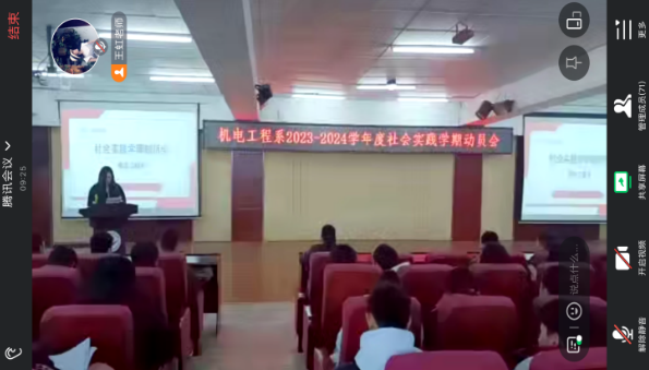 2023年12月26日12时20分,机电工程系2023-2024学年度社会实践学期动员会在图书馆501举行,机电工程系党总支书记郭明敬老师、机电工程系辅导员以及社会实践学期小组组长参加本次动员会,22级23级线下参会,21级以线上腾讯会议的方式参会。