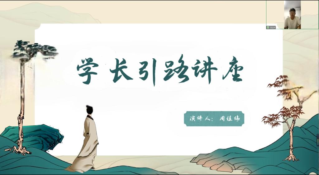 1月5日上午张超群老师线上主持学长引路讲座,讲座采用腾讯会议的形式进行,旨在为同学们提供学业与职业规划的指导,邀请到19级优秀毕业生周佳伟为学弟学妹们分享经验。