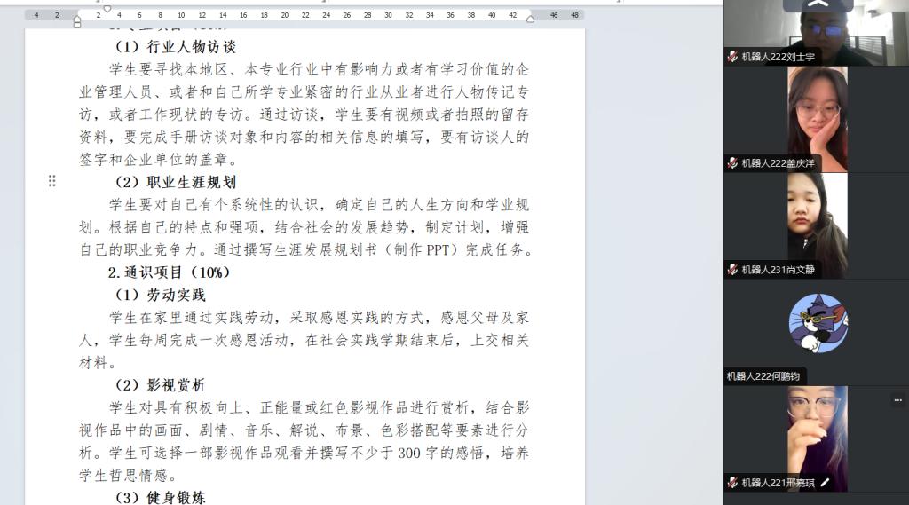 同学们提出了许多关于社会实践的问题,生涯导师一一进行解答,使同学们对即将展开的实践活动更加充满信心。整个线上动员会在积极向上的氛围中结束,同学们更加明确了社会实践的目标,也对未来的实践活动充满期待,预示着同学们将在社会实践的征程中迎来更多的收获与成长。