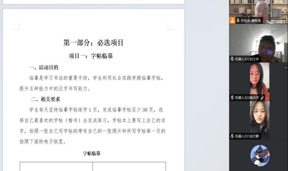 1月6日在通过腾讯会议的形式,机器人工程专业教师姜澎涛组织生涯学生召开社会实践动员会。生涯导师通过以往案例分析,详细介绍了社会实践对学生综合素质提升的巨大意义。强调实践是知识的延伸,是理论与实际相结合的桥梁,更是人生的一次宝贵经历。