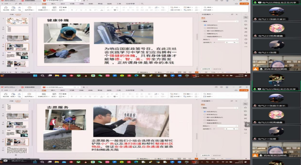 随机抽取了两组同学针对社会实践学期工作计划进行汇报,汝晓艳老师做出点评,对同学们不松懈,认真完成任务的态度做出表扬,对一些照片及报道等方面提出建议做出规范。
