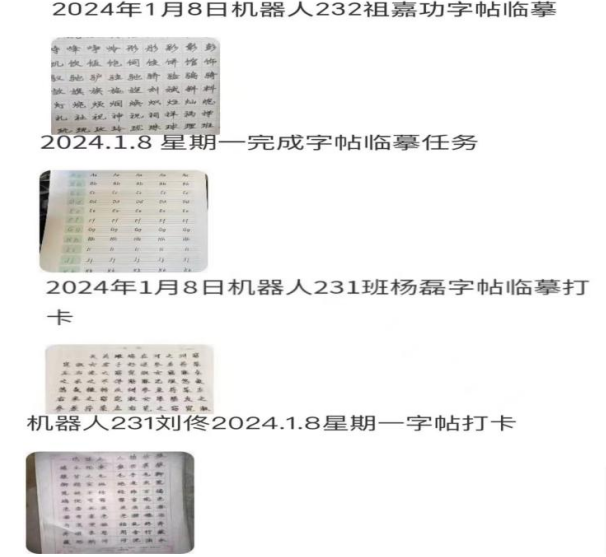 为了丰富学生寒假,增进师生间感情,学校为学生提供社会实践学期。1月8日上午由生涯老师李鑫主导,组织学生完成第一项,字帖临摹并且打卡。1月8日中午正式开始,组长带头调动组员积极性,使本次临摹活动进行的非常顺利。