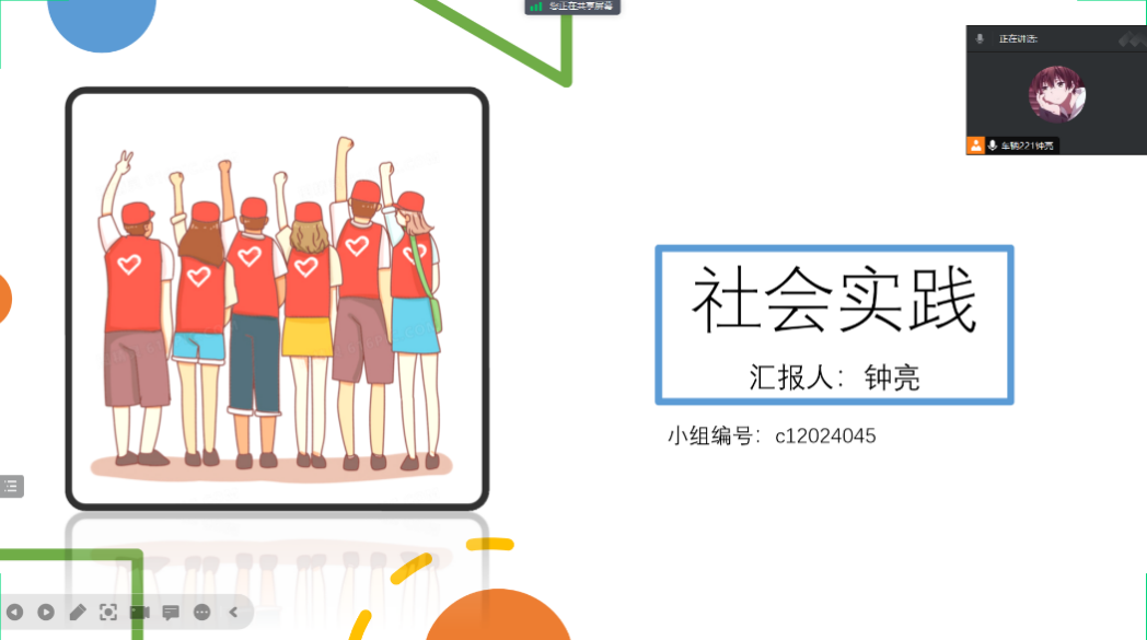 会议开展很顺利,组员及时参与会议的同时,积极在会议中发表言论,展示自己的实践成果。会议结束前组长做出总结,表扬组员字帖坚持情况,同时鼓励组员尽早进行母校回访,在学生离校前做到更好的宣传,鼓励组员坚持健身锻炼,每天深度阅读,观看品质优良、积极向上的影视作品,为锻炼健全人格、端正认识踏出每一步,为实现个人价值充分发挥主观能动性与客观规律性。