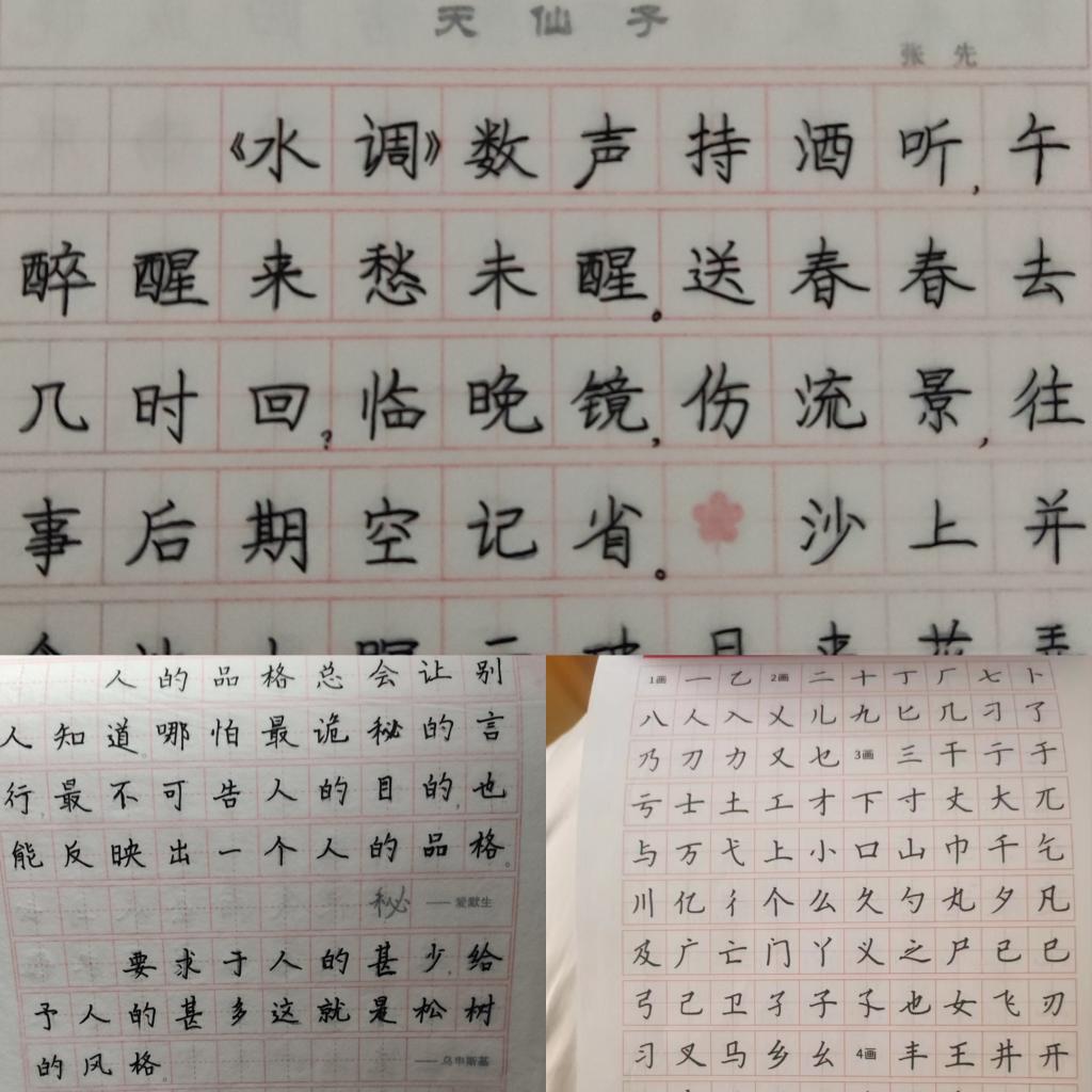 对于字帖临摹这一项,同学们积极度很高,通过钉钉进行每日打卡。在这期间,同学们每天利用碎片化的时间练字。大家纷纷表示,写字、练字的过程不仅是一个挥笔的过程,更是一个陶冶性情、修心养性的过程。相信一天天的积累也会让同学们颇有收获。