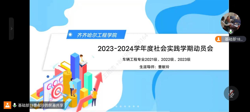 1月9日19:00,生涯老师曹献玲通过腾讯会议召开了2023-2024学年社会实践学期动员会,曹老师指导的所有生涯学生参加了此次动员会。