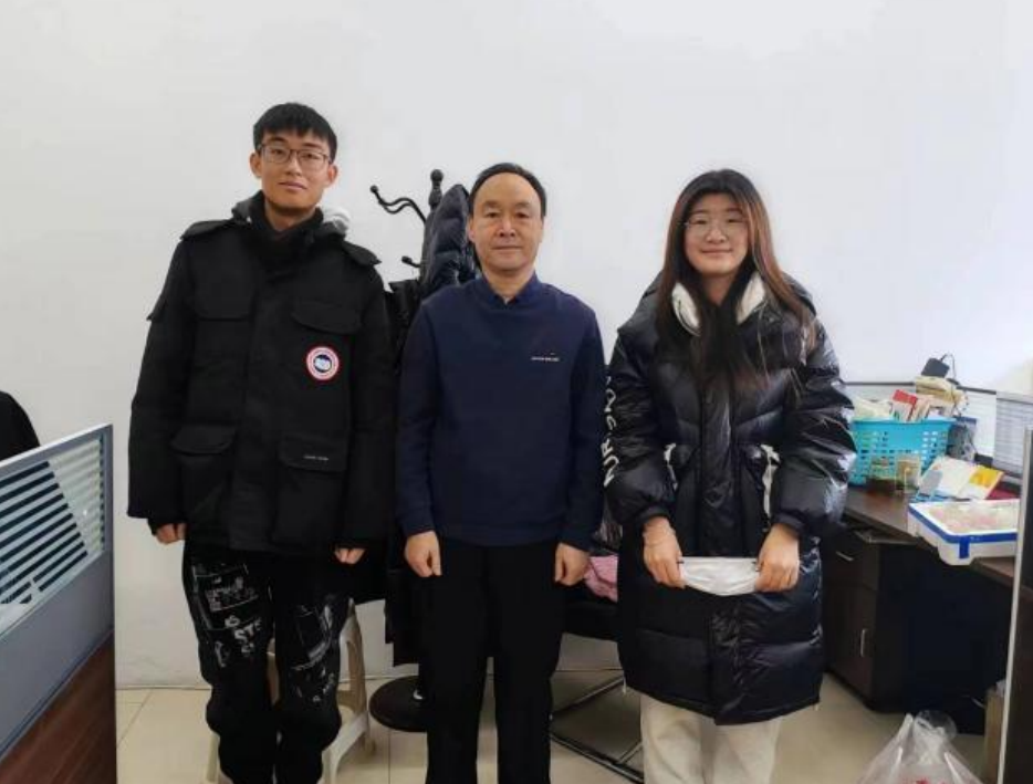 1月9日上午9时,齐齐哈尔工程学院机电工程系学生电气231班李晓航与新能源231班张倩在富裕县实验中学进行回访母校任务。在高三教学楼理综办公室拜访高中班主任李甫老师。