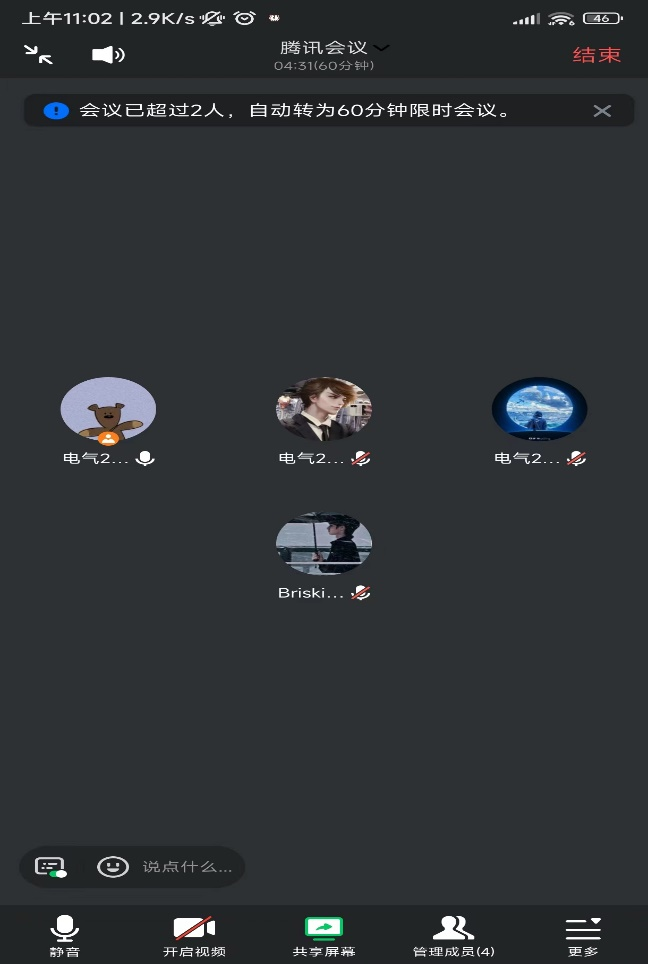 美好的假期如约而至,已经度过充实而又快乐的一周。为了了解本组成员社会实践任务的进度,2024年1月10日星期三上午组长周贝贝组织小组成员黄柳丽、杨先泽、罗浪浪召开“社会实践成果”的线上会议,汇报工作进度。