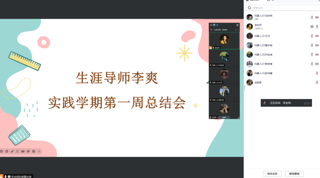 1月12日,机器人工程专业生涯导师李爽召开22级和23级社会实践学期第一周总结会,旨在让同学们了解社会实践学期的意义,同时对第一周的实践学习情况进行总结交流。