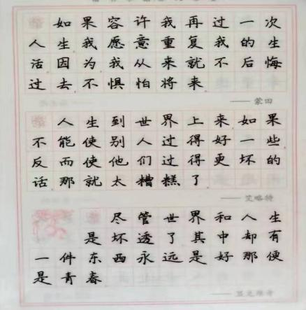 学习书法让我发现了其独特的美感。书法作为一种传统的艺术形式,注重的不仅仅是汉字的字形和结构,更是一种有着丰富内涵的文化艺术。通过对书法的学习和实践,我发现每一个字形都像一幅画,每一个笔画都有它的独特之美。书法的美感不仅在于字形的工整和优美,更在于墨迹的凝练和用笔的灵动。在学习和创作书法作品的过程中,我不仅提升了对美的敏感度,也培养了对审美的独到见解,让我感受到了社会责任的重要性。通过在社会实践中与不同群体的交流,我深刻体会到自己作为大学生所担负的社会责任和使命。