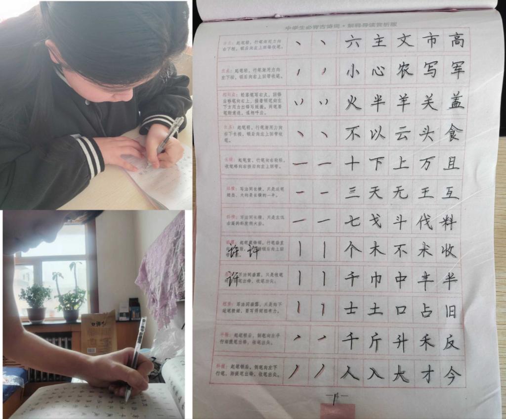 通过一周的字帖临摹,让这个小组的每位成员都有了很大的收获,字帖临摹对于他们提高书写水平和美感、锤炼毅力和耐力、调整书写习惯等都有积极的影响。
