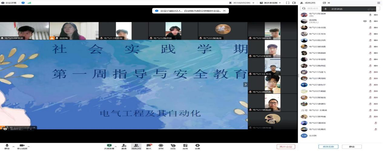 在这长达近一个小时的会议中,曲老师为讲解了各方面的安全知识,列如出行的安全以及预防网络诈骗等等。不仅如此,在会议期间,老师让同学们畅所欲言自己社会实践学期中所遇到的困难和哪些不会的方面,来帮助我们解决问题。