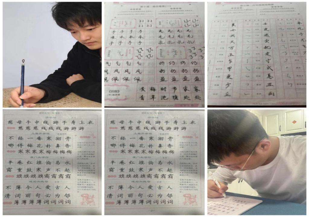 于是,在社会实践的第一周开展了字帖临摹这项任务。于光普和佟柏宣选择的是硬笔楷书,田二硕则选择的是毛笔小楷。