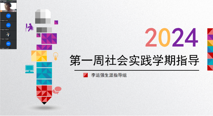 1月12日晚7点生涯老师李运强通过线上腾讯会议进行第一周社会实践学期指导会。李老师对第一周的社会实践活动进行点评并提出活动建议。