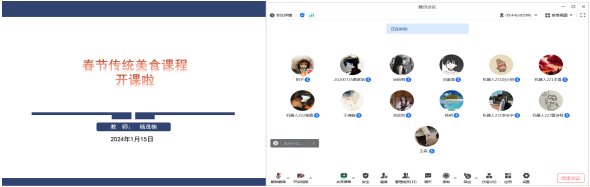 为了更好的完成社会实践学期春节传统美食课相关课程要求,1月15日晚9点,生涯导师杨茂楠利用线上开展一次线上会议。
