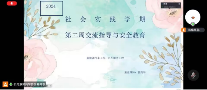 第一周的社会实践活动已经结束,为更好的完成接下来的社会实践学期的任务和手册的填写,1月15日下午,郭兴宇老师召开了社会实践学期第二次交流指导与安全教育,会议由郭兴宇老师主持,且所带社会实践学期小组全员参与。